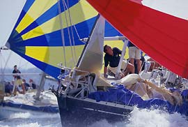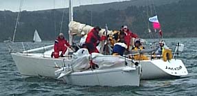 Russell Peters' overgrown dinghy, the Ultra 30 'Reloaded Red Square', will be taking on Mike Slade's 92 ft super-sloop 'Skandia Leopard' in this year's Hoya Round the Island
