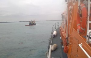 Volunteer lifeboat crews went to the aid of the men after receiving a Mayday call on Wednesday
